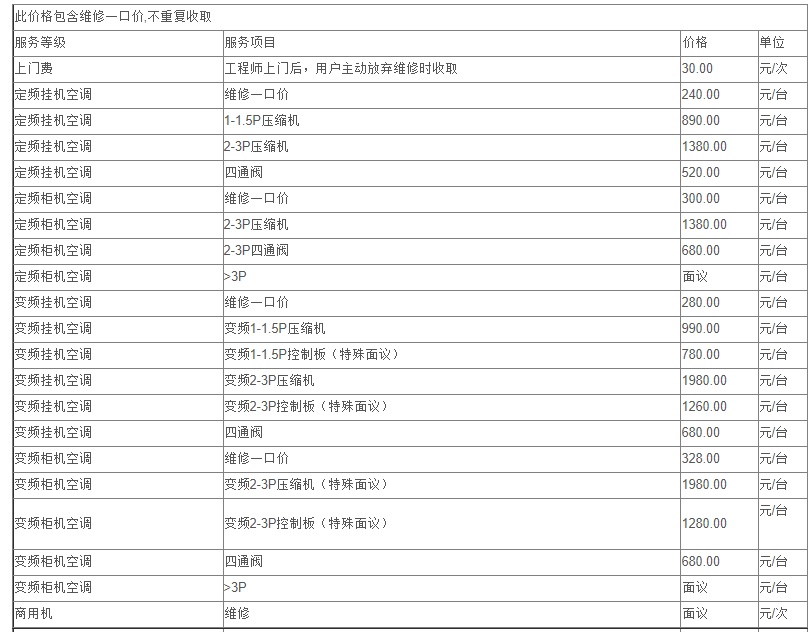 8、更換連接銅管不屬于維修范疇,按安裝價(jià)格執(zhí)行。