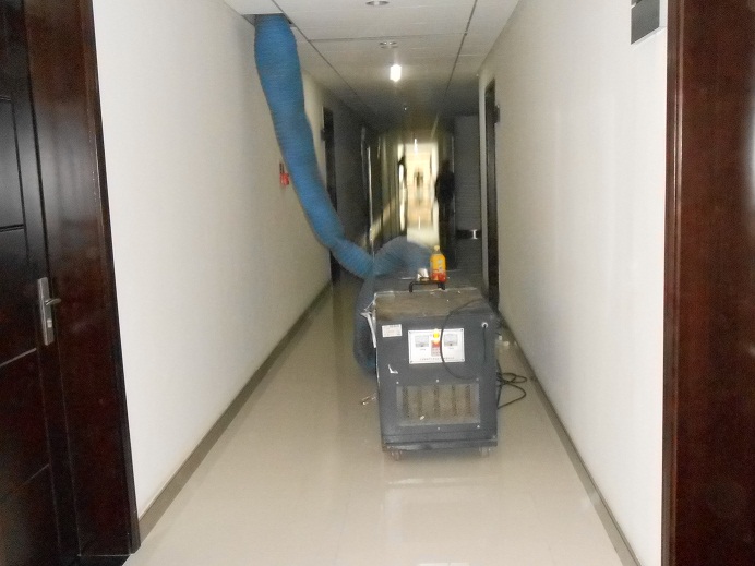 2、冷凝水盤清洗及消毒  冷凝水盤直接與空氣接觸,空氣中的粉塵、細菌、病毒與冷凝水溶解后,結垢、長藻。潮濕環境變成了細菌(特別是“軍團菌”)的溫床,各種細菌大量繁殖滋生。因此冷凝水盤的潔凈程度將直接影響到室內空氣的品質。
